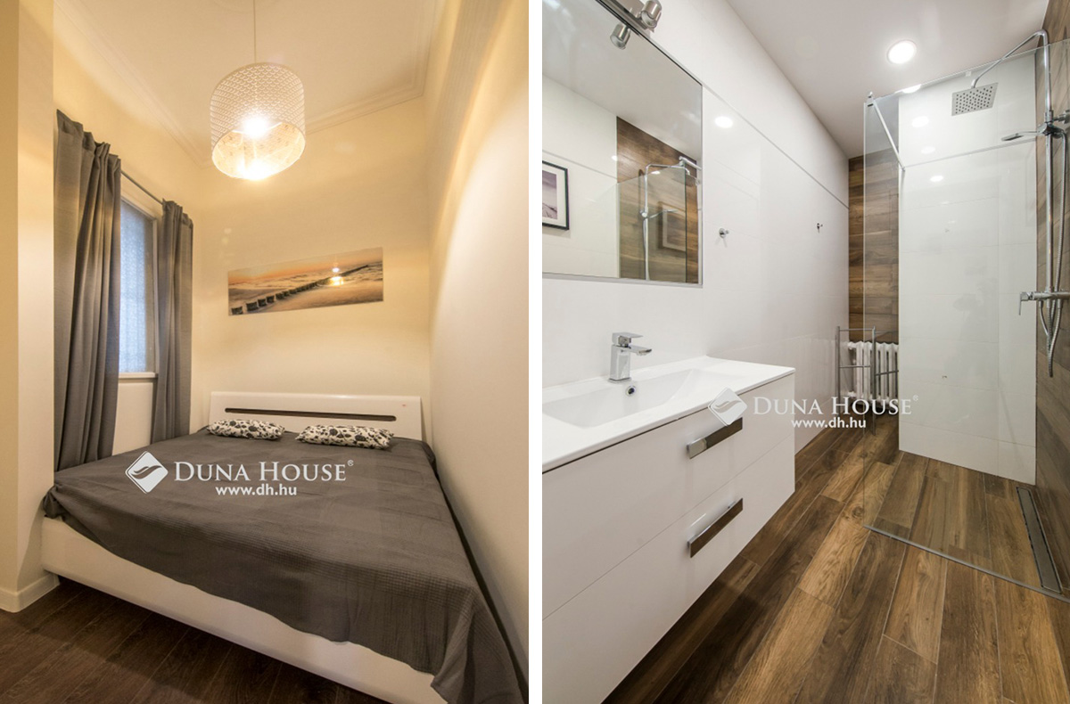 Łazienka wykończona w tonacjach drewna i bieli, wyposażona jest w przestronny prysznic, co zapewnia komfort użytkowania. Całość mieszkania uzupełniają duże okna, które wpuszczają naturalne światło, tworząc jasną i przyjemną atmosferę. To miejsce oferuje doskonałe warunki do życia w samym sercu Budapesztu, łącząc funkcjonalność z niepowtarzalnym stylem.